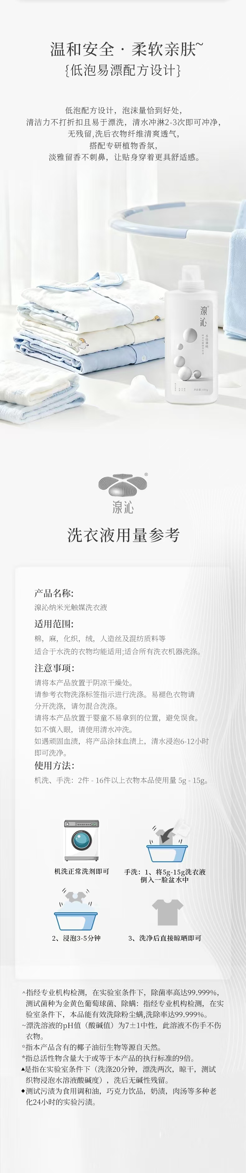 英国生产,香港灌装。 1、六倍浓缩配方,一瓶等于传统3公升洗衣液。仅需5毫升即可清洗5–6件衣物;清洗10–15件衣物,或床单、被罩等大件,也仅需15毫升。 2、环保无污染,纯天然植物萃取,无化学添加,母婴衣物也可安心使用。 3、纳米光促化技术,高效杀菌消毒,效果持久,无需另外添加消毒液或柔顺剂。 4、针对明显污渍,可先将洗衣液直接涂抹于污处(无需加水),静置30分钟后手洗或机洗,轻松去渍。 5、十效合一:洗衣、护衣、柔顺、护肤、除菌、除螨、祛味、清洁洗衣机槽、机洗、母婴及内衣。